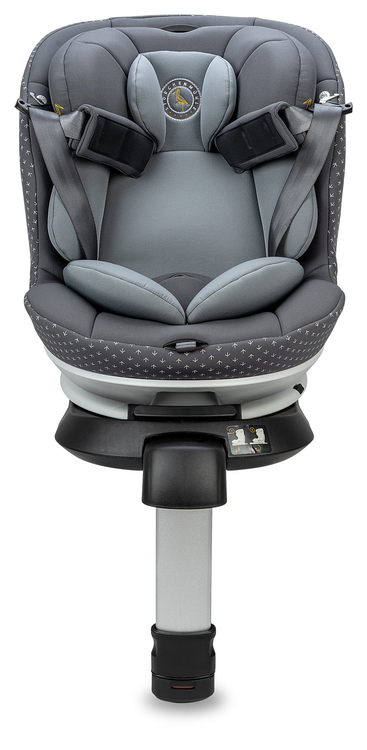 Il seggiolino per bambini è fissato in modo sicuro e semplice in auto con Isofix e il supporto gamba regolabile in altezza.