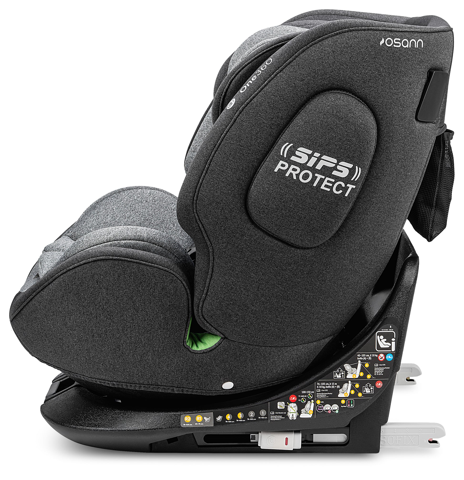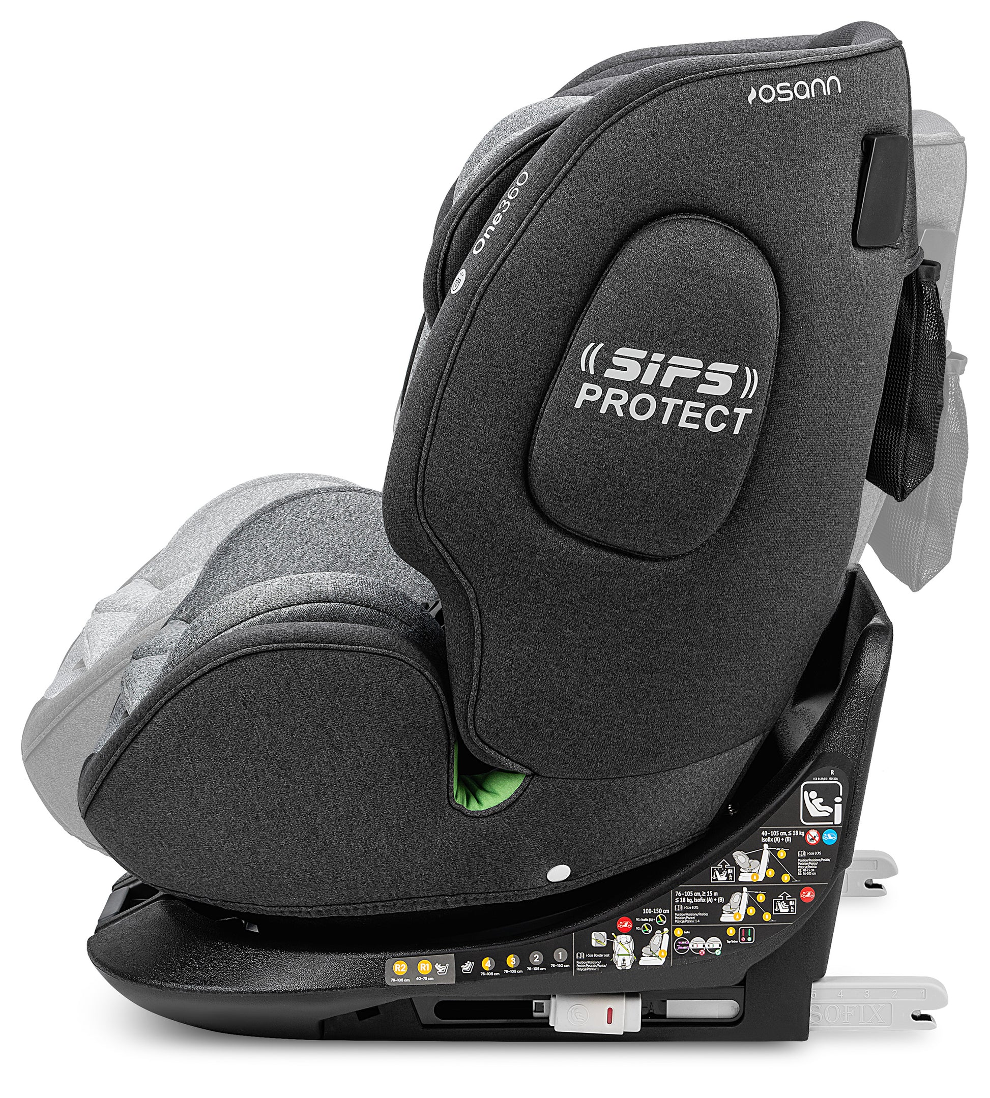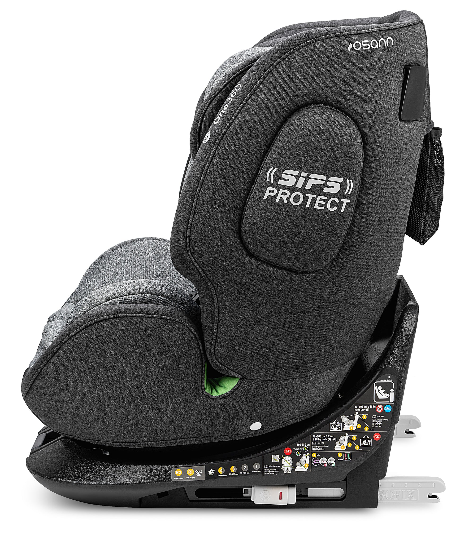 Il sistema Isofix consente un'installazione facile e veloce nel veicolo. Con i connettori Isofix retrattili, One360 iSize può essere adattato individualmente al seggiolino auto.