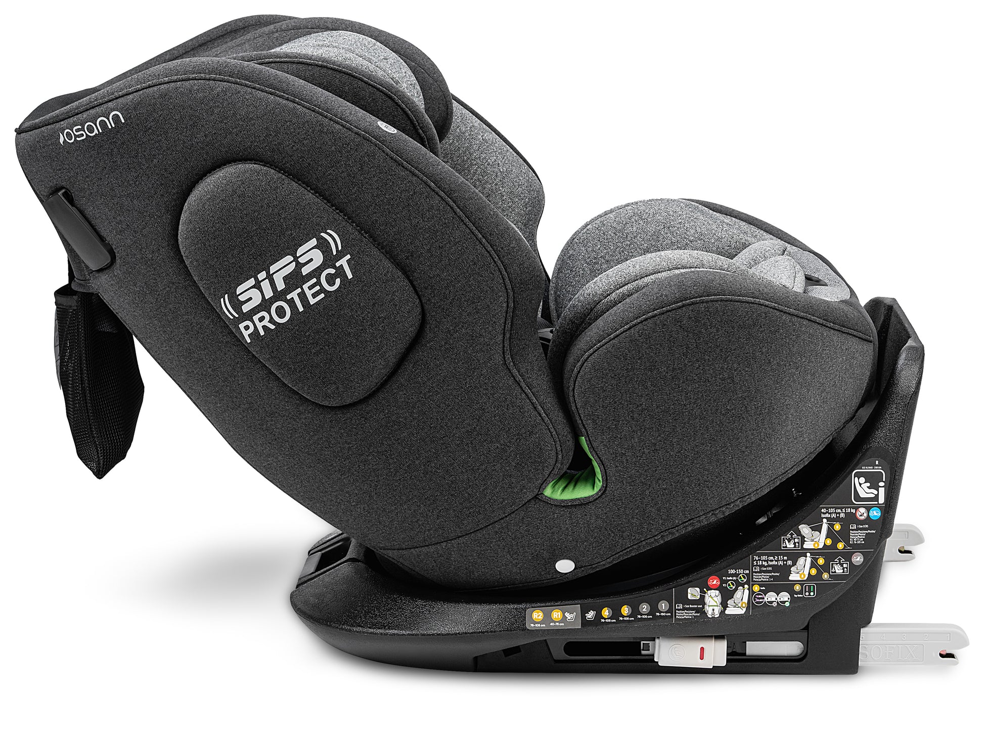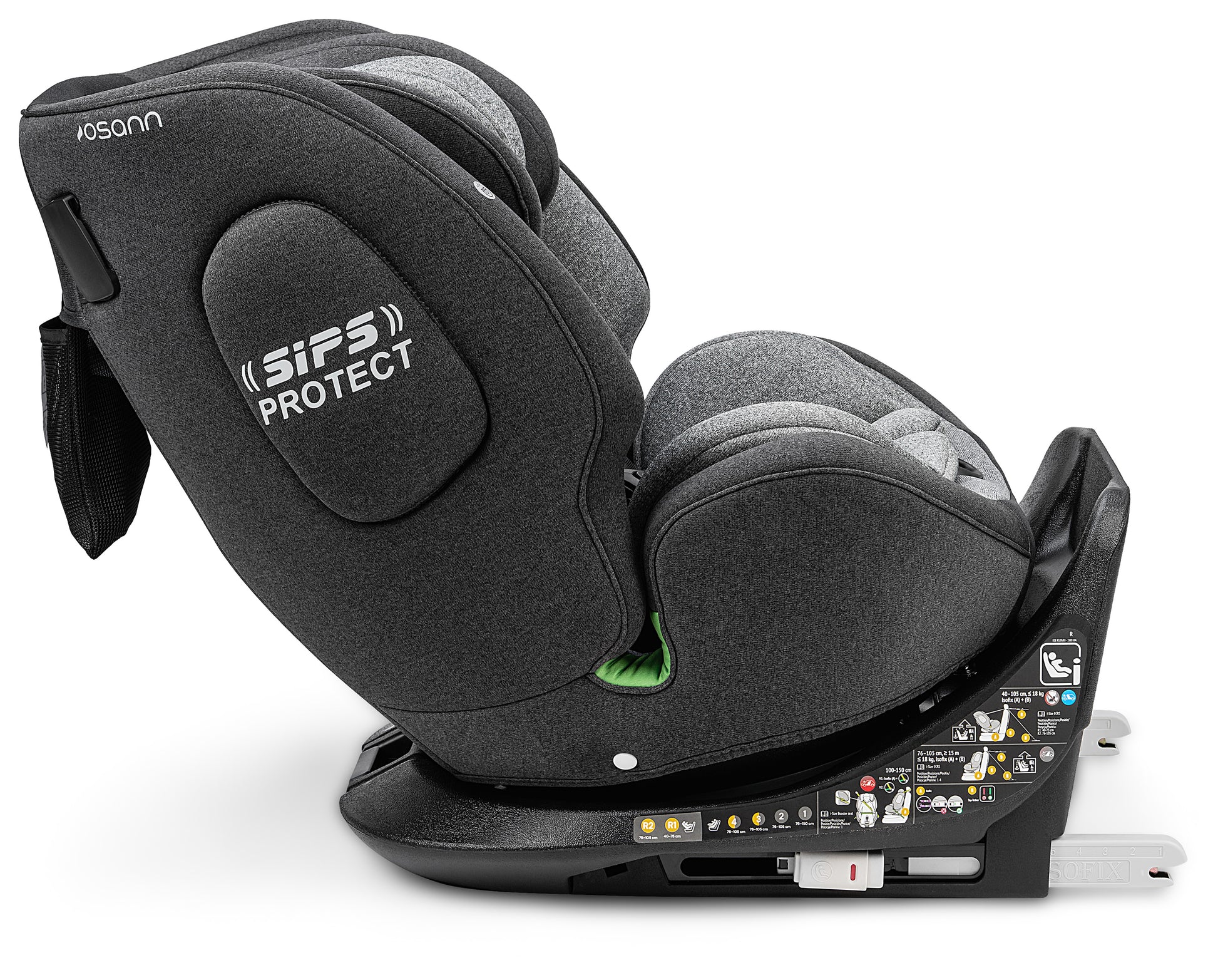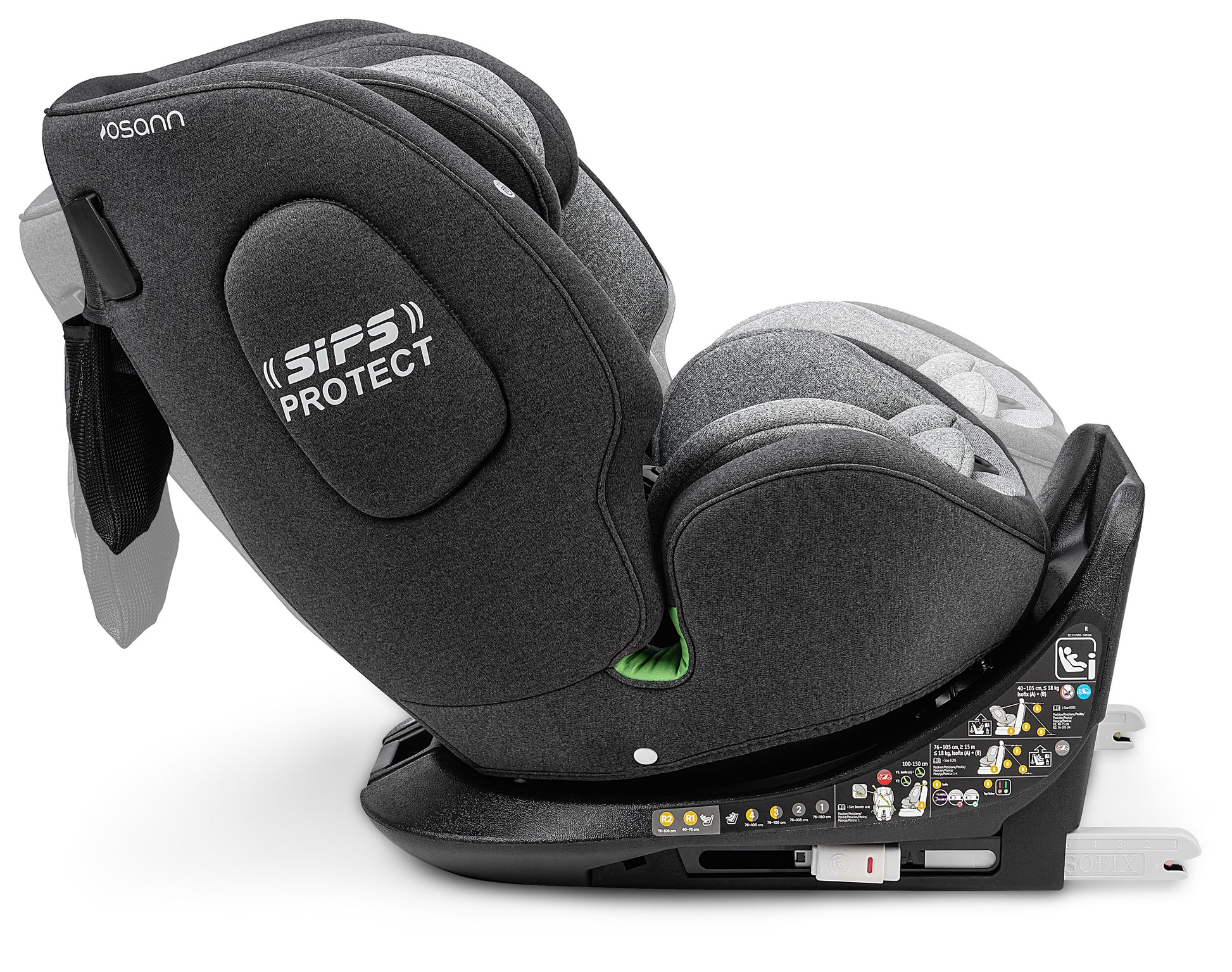 Il sistema Isofix consente un'installazione facile e veloce nel veicolo. Con i connettori Isofix retrattili, One360 iSize può essere adattato individualmente al seggiolino auto.